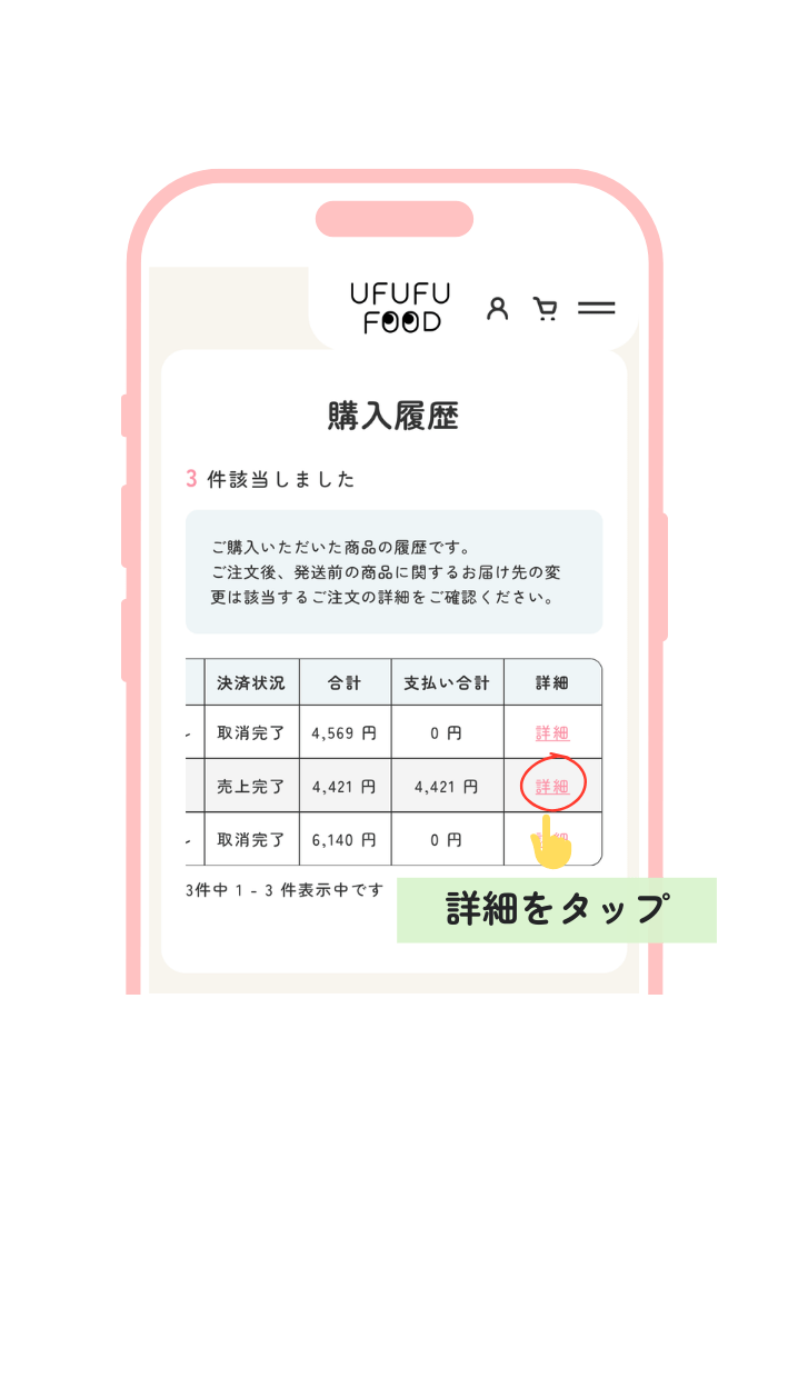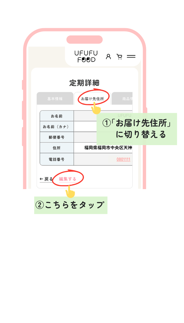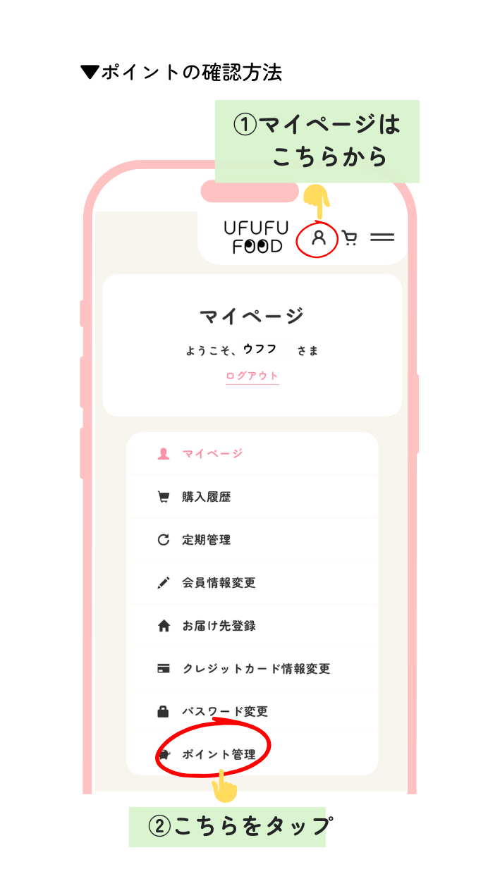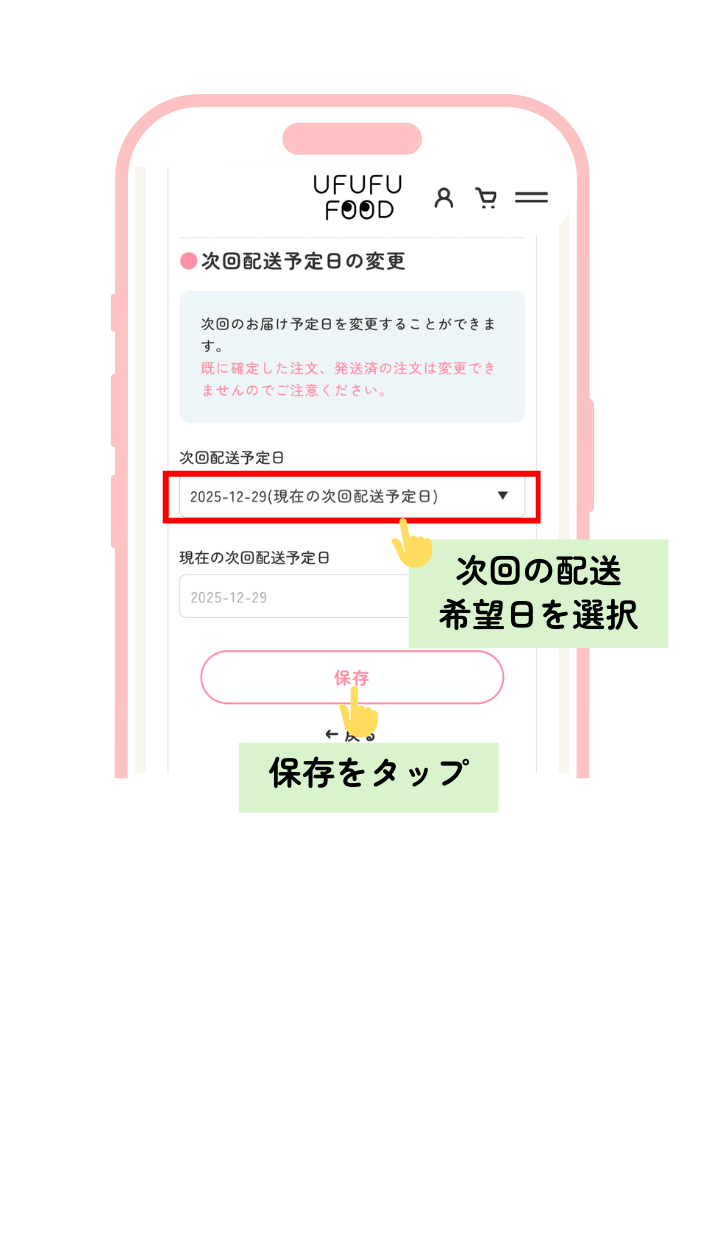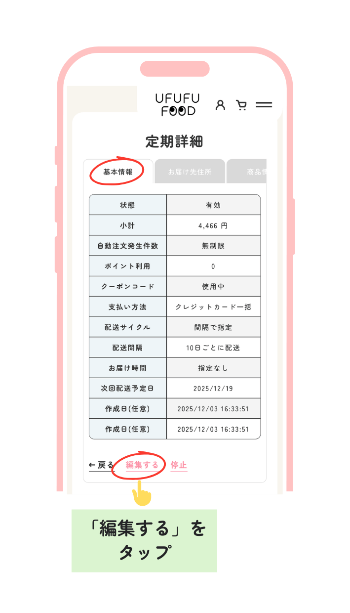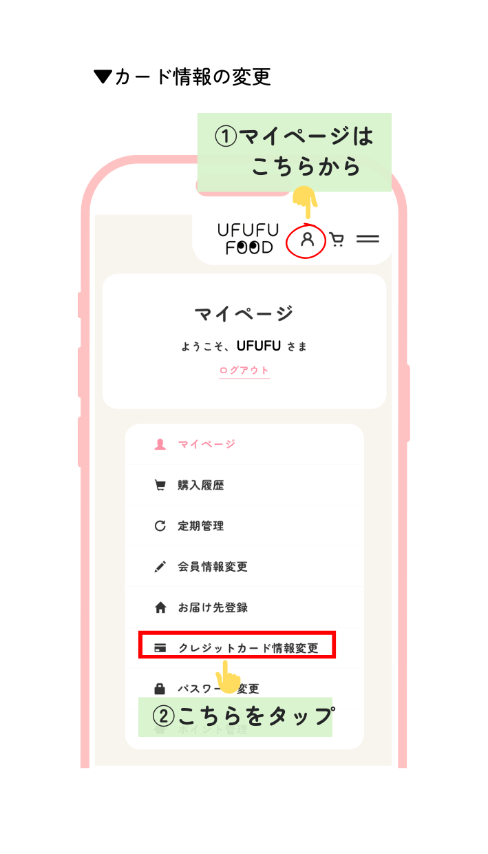 UFUFU FOODの定期便の停止は、マイページからお客さまご自身でお手続きいただけます。