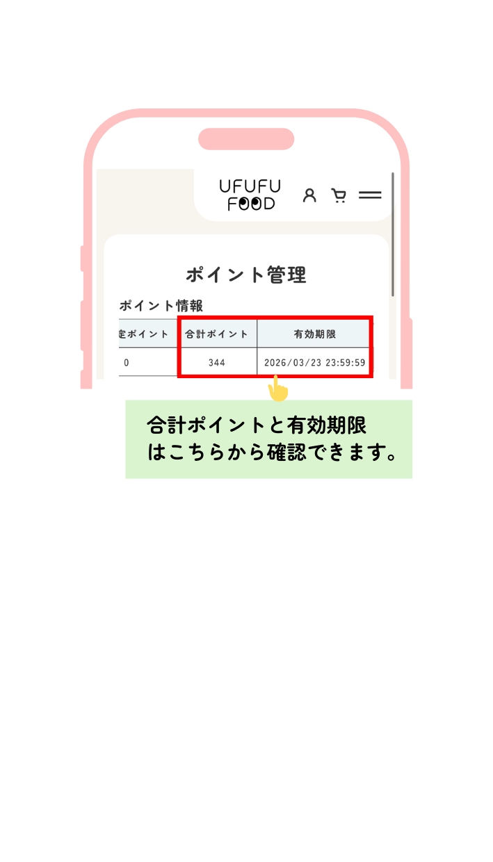 ポイントの有効期限は、最終購入日から120日間です。商品をご購入いただくたびに有効期限が120日間更新されます。現在の有効期限は、マイページにてご確認いただけます。操作方法は下記「▼ポイントの確認方法」をご確認ください。