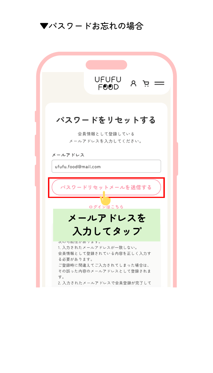 パスワードをお忘れの場合は、パスワード再設定用フォームにご登録のメールアドレスをご入力し「パスワードリセットメールを送信する」をクリックしてください。