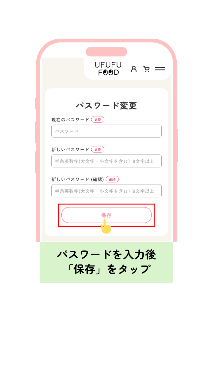 3.現在のパスワードと新しいパスワードを入力し「保存」をタップ
