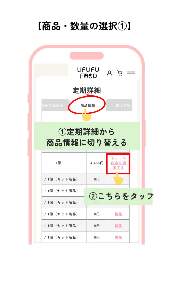 操作方法は下記「▼定期便の商品・数量・周期の変更」をご確認ください。